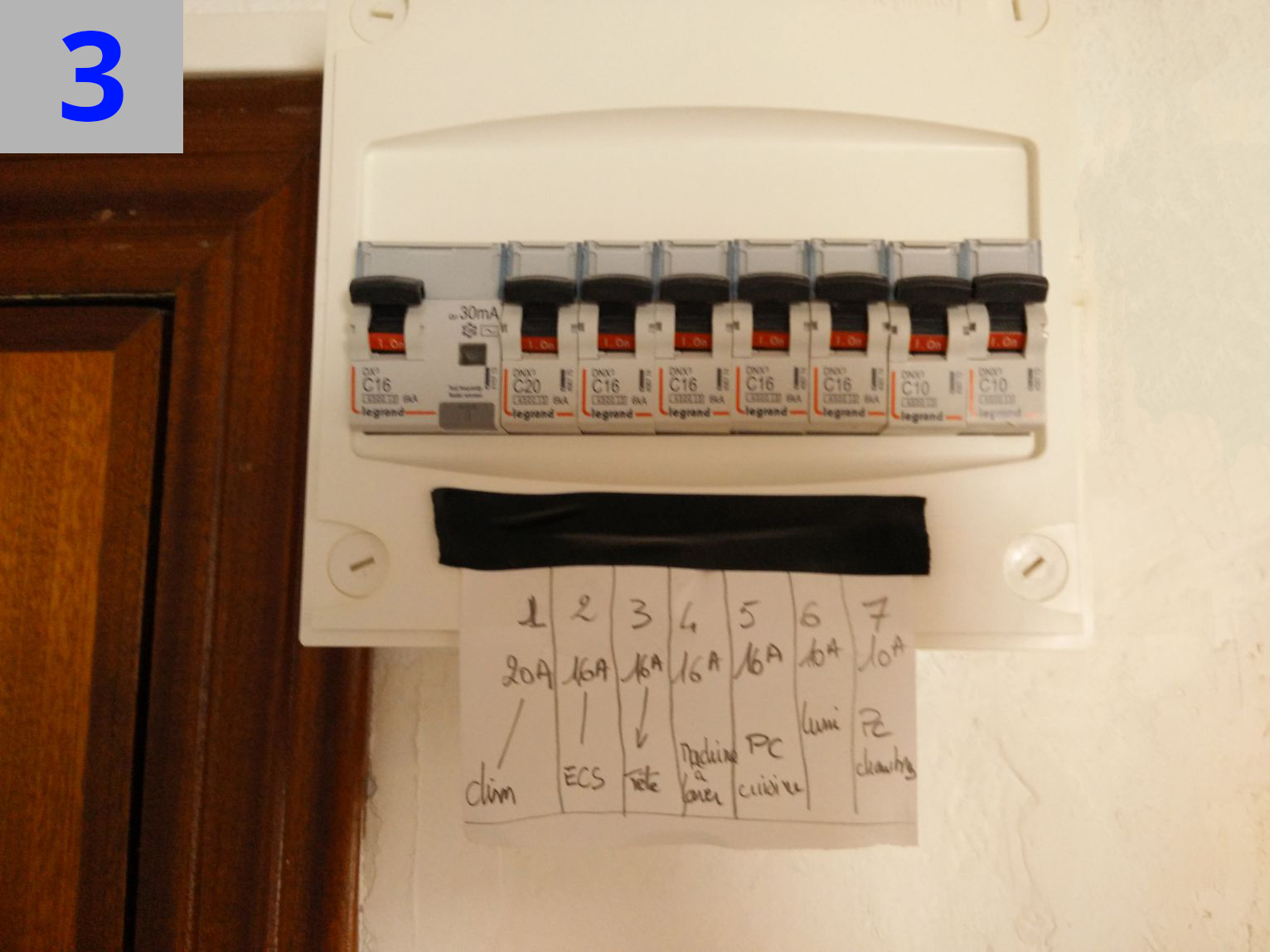 En cas de surcharge (si le compteur saute) il faudra baisser et remonter les fusibles de la photo n°2 pour réarmer.