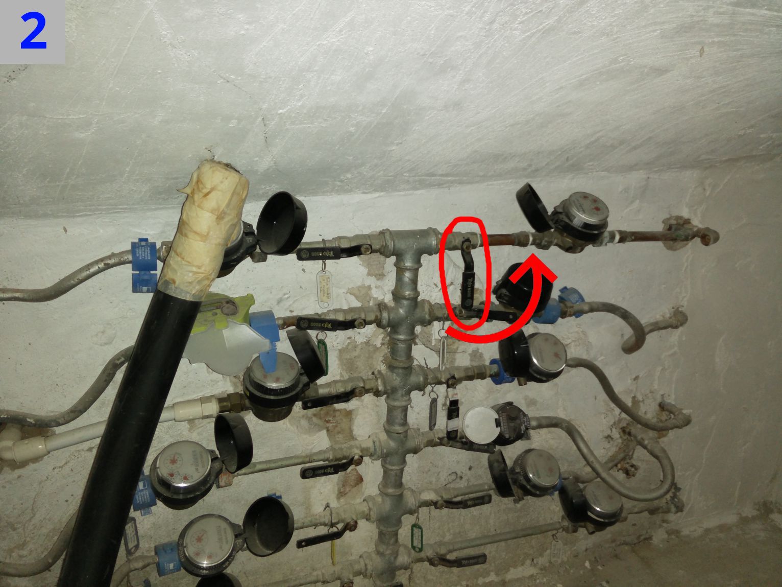 Photo n°2 : Le compteur de l'appartement est celui en haut à droite, pour ouvrir, tourner la manette entourée en rouge.